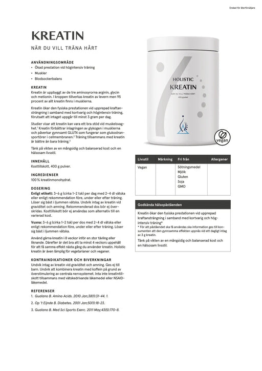 HolisticKreatin är ett populärt kosttillskott som ofta används av idrottare och träningsentusiaster för att förbättra prestanda och muskeluppbyggnad.✓ 100...