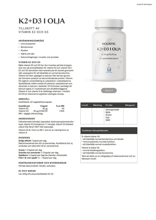 Holistic K2+D3 i olja, 60 kapslar