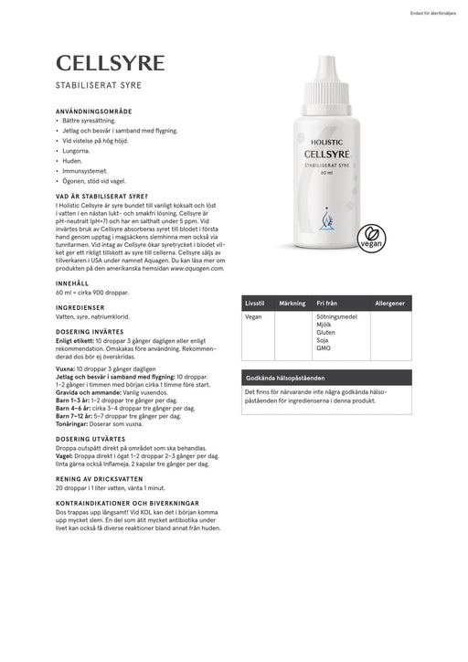 pH-neutralt syre i flytande form. I Holistic Cellsyre är stora mängder syre bundet till vanligt koksalt och löst i vatten.När syre binds till vatte...