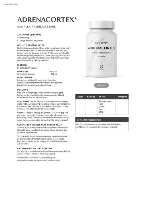 Holistic Adrenacortex 150 mg, 60 kapslar