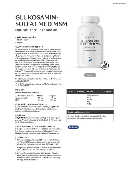 Holistic Glukosaminsulfat med MSM, 90 kapslar