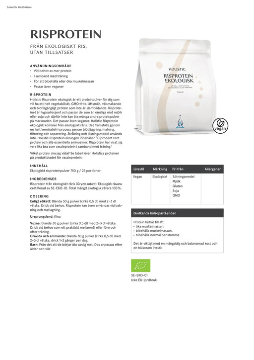 Visa alla detaljerHolistic Risprotein ekologisk, 750 g