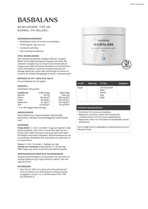 Visa alla detaljerHolistic Basbalans, 250 g pulver