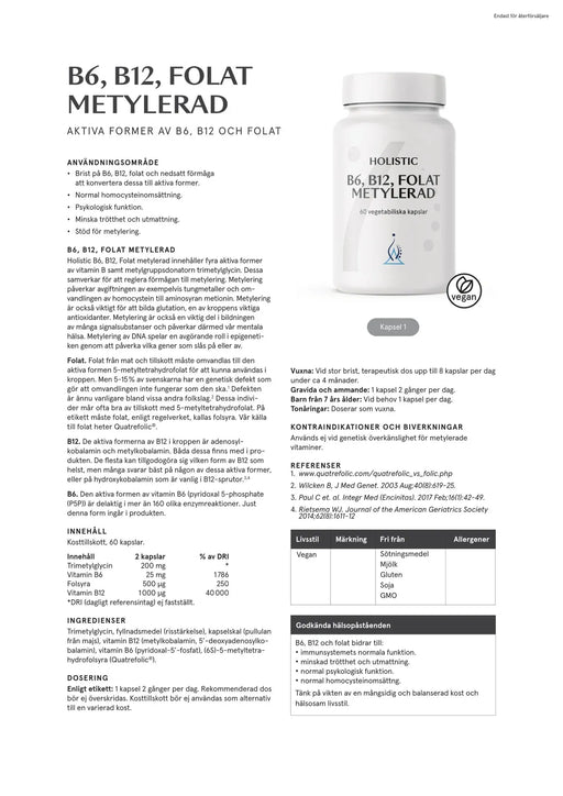 Visa alla detaljerHolistic B6 B12 Folat metylerad, 60 kapslar