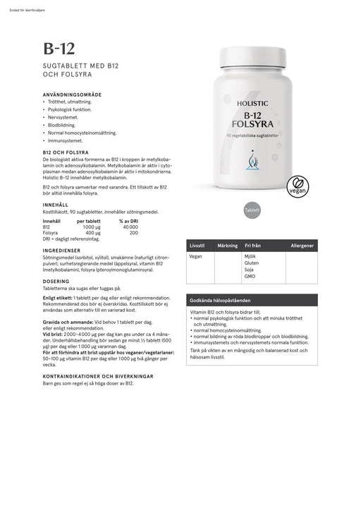 Visa alla detaljerHolistic B-12 Folsyra, 90 tabletter
